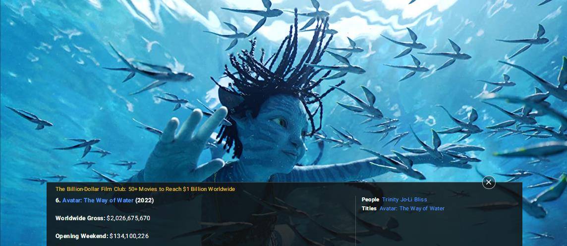 6、阿凡達:水之道Avatar: The Way of Water (2022) 全球票房: $2,026,675,670