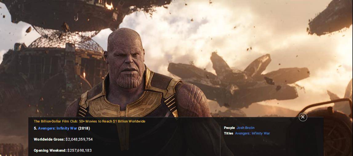 5、復仇者聯盟:無限戰爭Avengers: Infinity War(2018) 全球票房: $2,048,359,754
