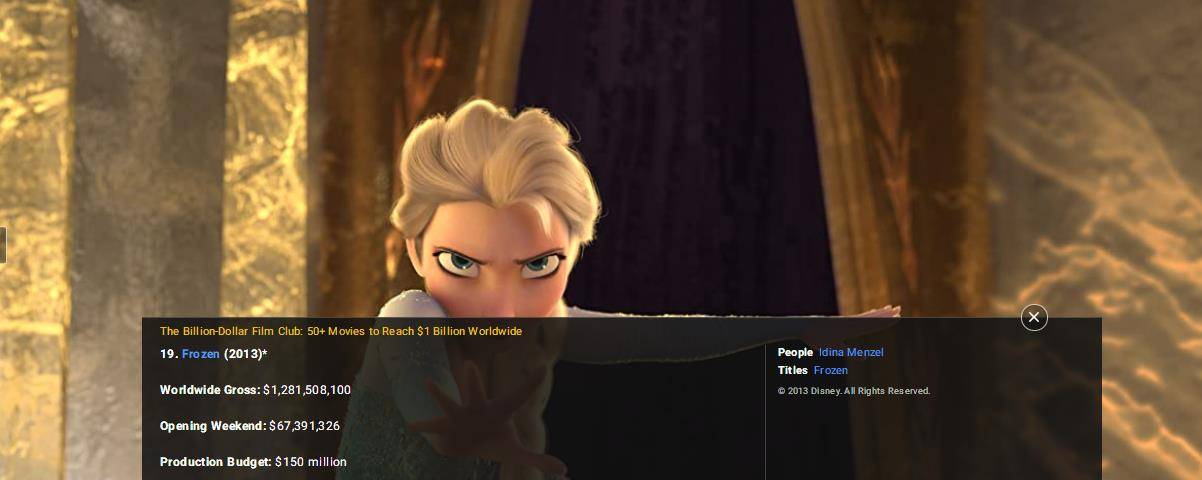 19、冰雪奇緣(冷凍)Frozen(2013) 全球票房: $1,281,508,100
