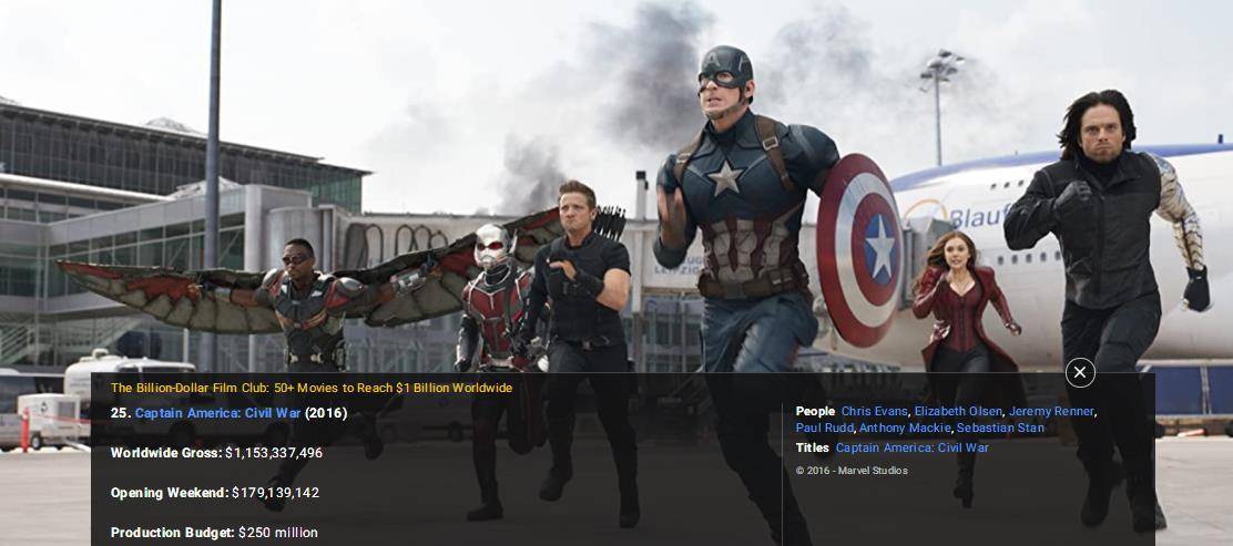 25、美國隊長:內戰Captain America: Civil War(2016) 全球票房: $1,153,337,496