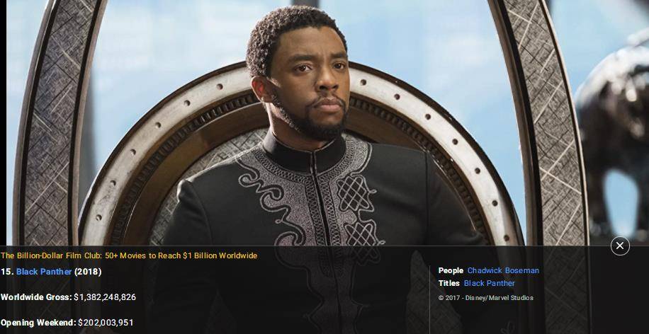 15、黑豹Black Panther(2018) 全球票房: $1,382,248,826