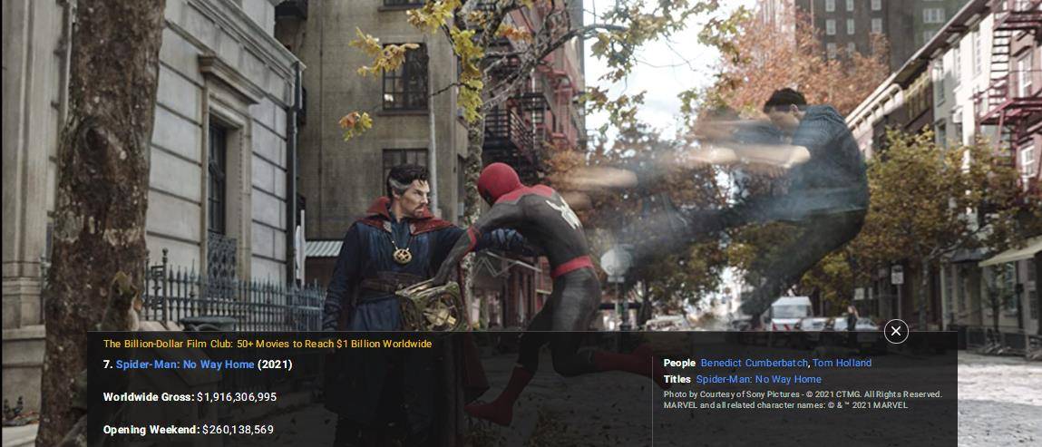 7、蜘蛛俠無路可走Spider-Man: No Way Home(2021) 全球票房: $1,916,306,995