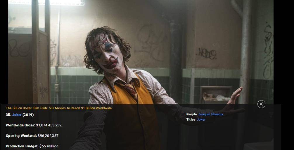 35、小丑Joker(2019) 全球票房: $1,074,458,282