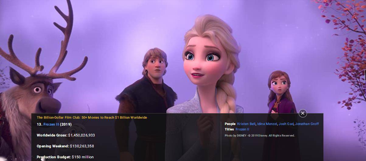 13、冰雪奇緣2Frozen II(冷凍2)(2019) 全球票房: $1,450,026,933