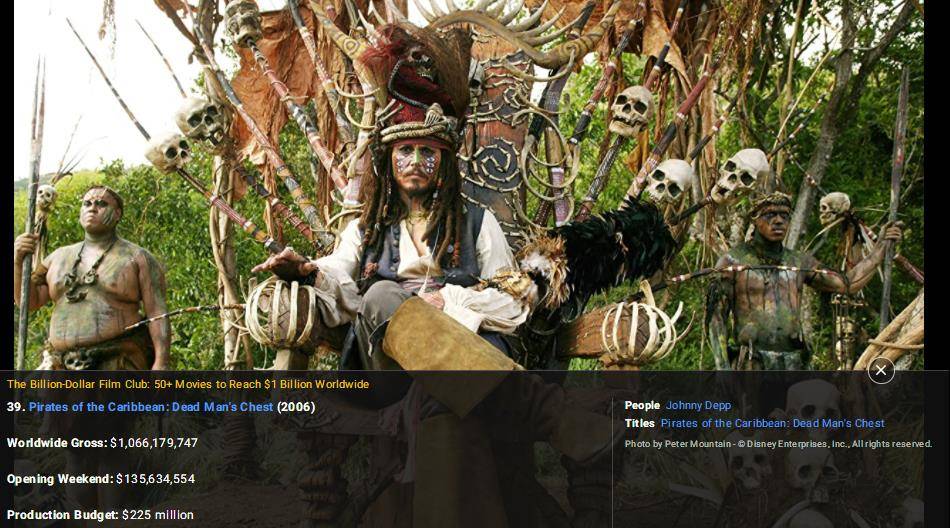 39、加勒比海盜:亡靈之箱Pirates of the Caribbean: Dead Man’s Chest(2006) 全球票房: $1,066,179,747