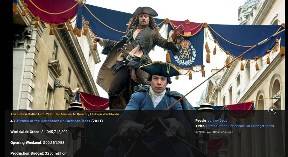 43、加勒比海盜:驚濤怪浪Pirates of the Caribbean: On Stranger Tides(2011) 全球票房: $1,045,713,802