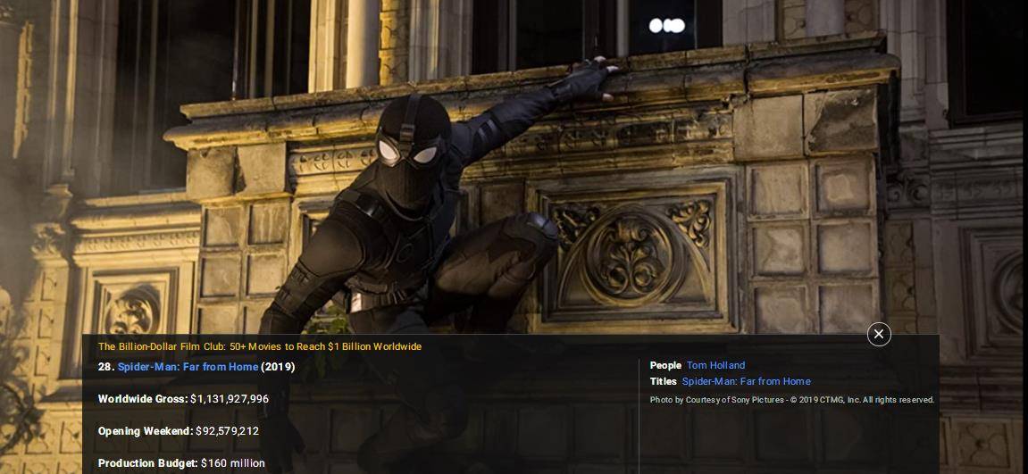 28、蜘蛛俠:遠離家鄉Spider-Man: Far from Home(2019) 全球票房: $1,131,927,996