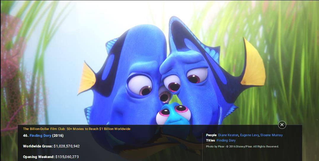 46、海底總動員Finding Dory(2016) 全球票房: $1,028,570,942