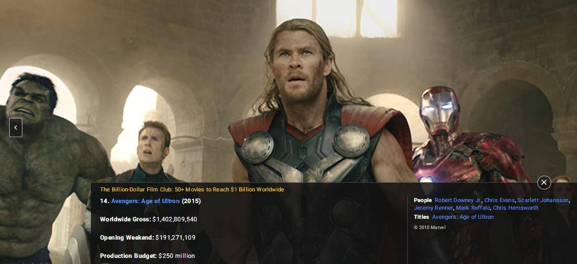 14、復仇者聯盟:奧創時代Avengers: Age of Ultron(2015) 全球票房: $1,402,809,540