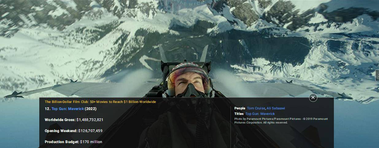 12、壯志凌雲:特立獨行Top Gun: Maverick(2022) 全球票房: $1,488,732,821