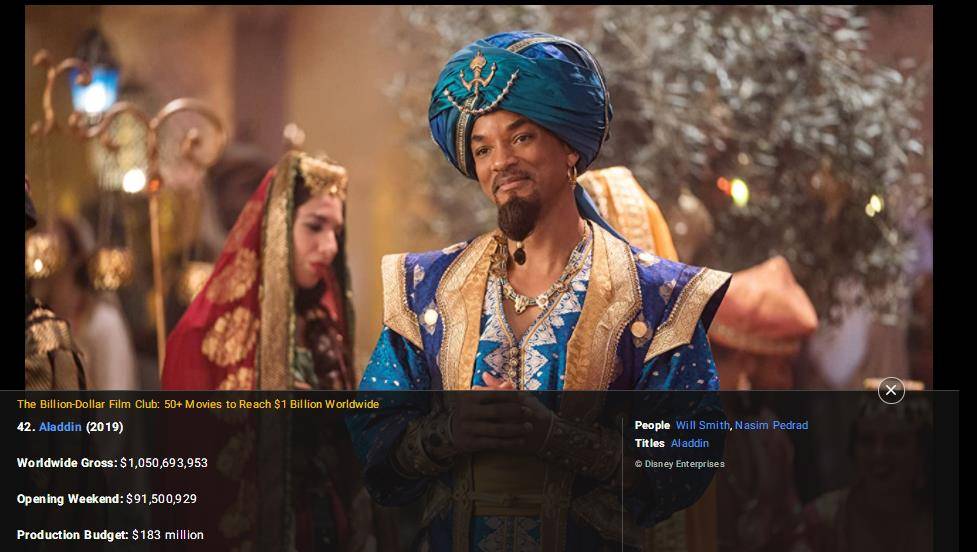 42、阿拉丁Aladdin(2019) 全球票房: $1,050,693,953