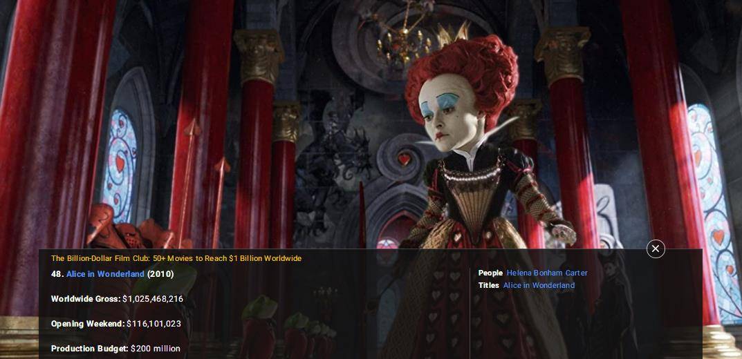 48、愛麗絲絲仙境Alice in Wonderland(2010) 全球票房: $1,025,468,216