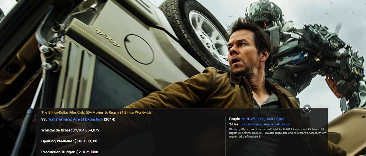 33、變形金剛:滅絕時代Transformers: Age of Extinction(2014) 全球票房: $1,104,054,072