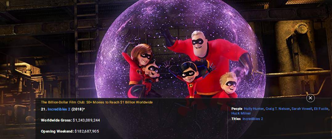 21、超人特工隊2Incredibles 2(2018) 全球票房: $1,243,089,244