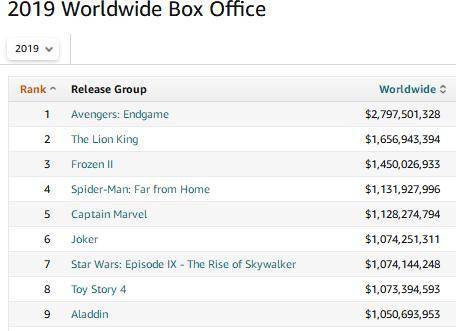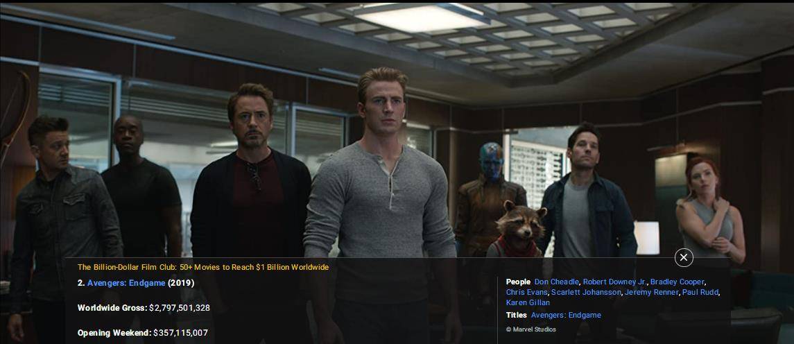 2、復仇者聯盟終極之戰Avengers: Endgame(2019) 全球票房: $2,797,501,328