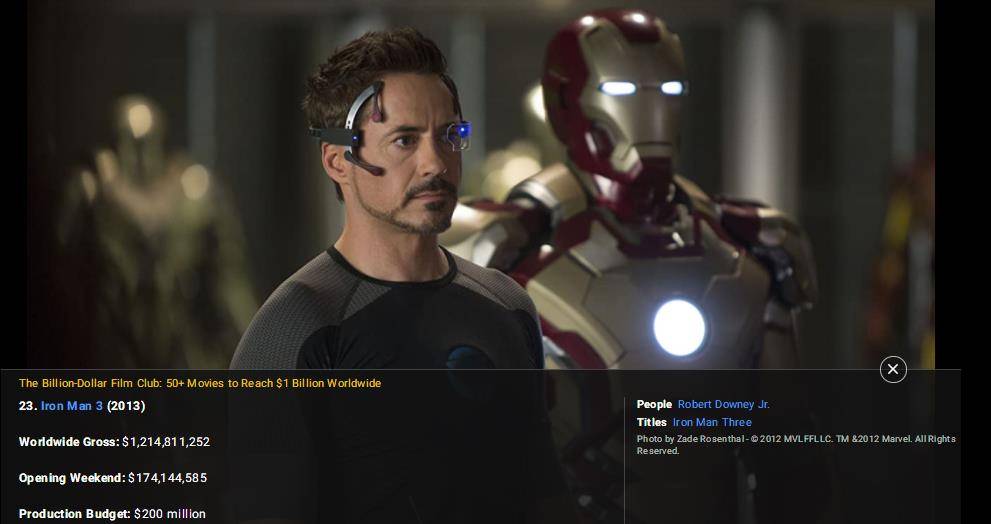 23、鋼鐵俠3Iron Man 3(2013) 全球票房: $1,214,811,252