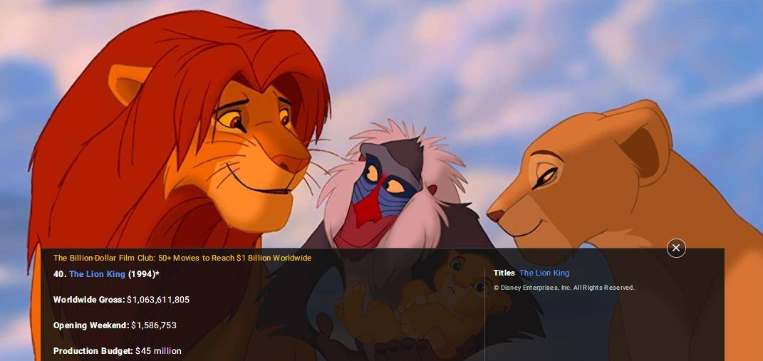 40、獅子王The Lion King(1994) 全球票房: $1,063,611,805