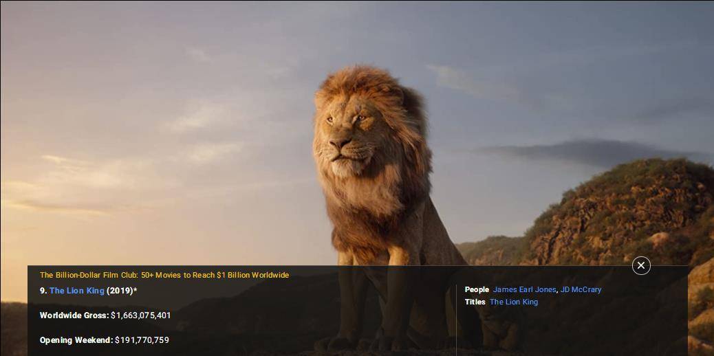 9、獅子王The Lion King(2019) 全球票房: $1,663,075,401