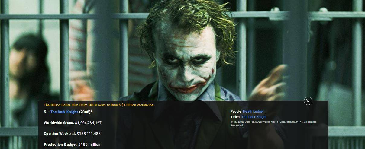 51、黑暗騎士The Dark Knight(2008) 全球票房: $1,006,234,167