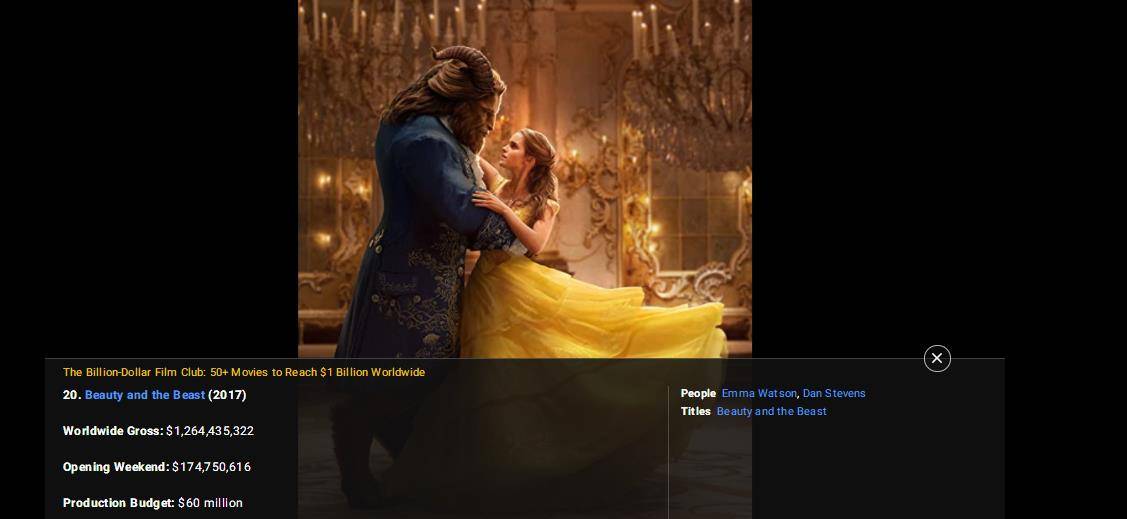 20、美女和野獸Beauty and the Beast (2017) 全球票房: $1,264,435,322