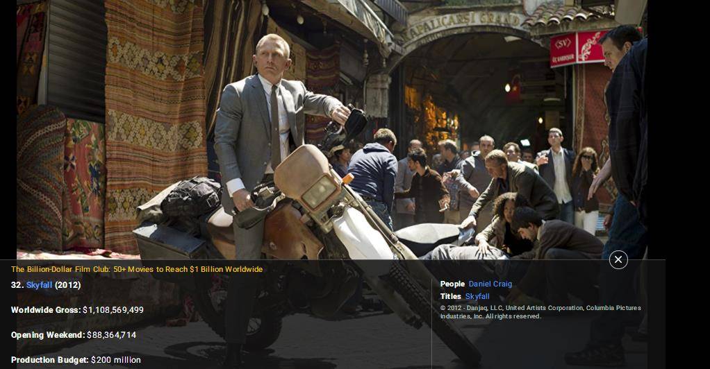 32、007:大破天幕殺機Skyfall(2012) 全球票房: $1,108,569,499