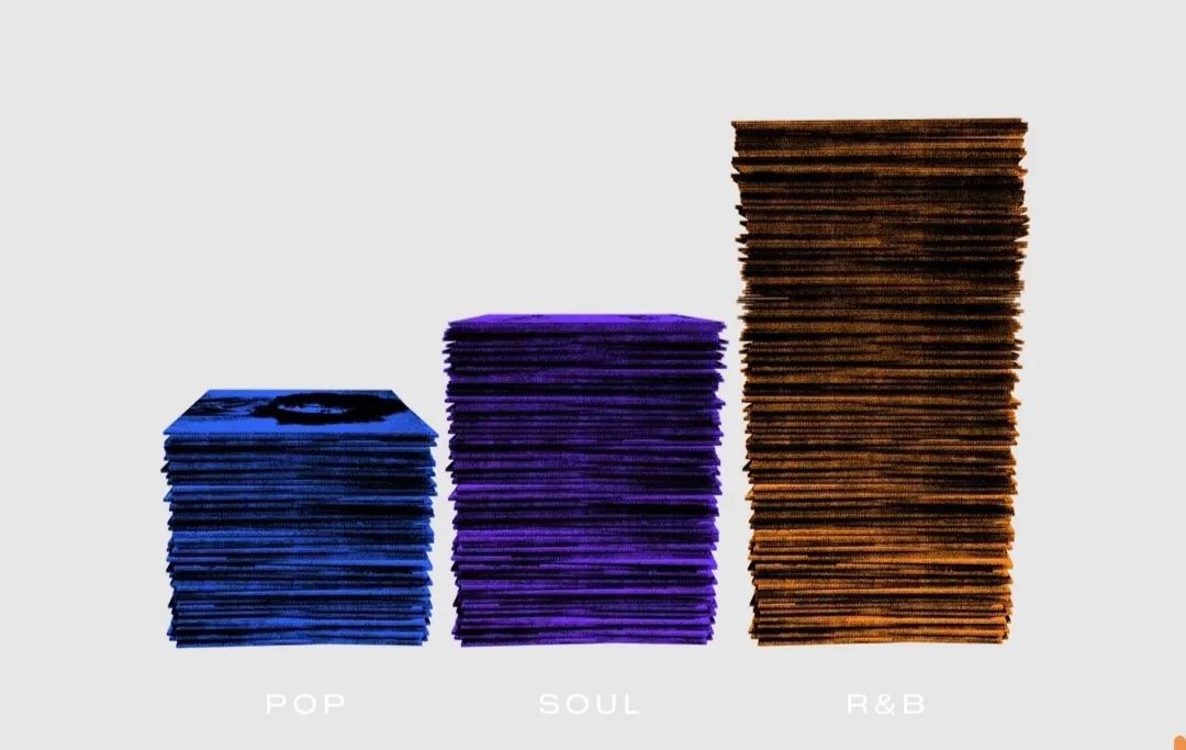 但在2022年,R&B曲風卻同比上漲40%,力壓Hip-hop成為了新一代採樣源,側面來講,R&B曲風也正迎來“採樣復興”。