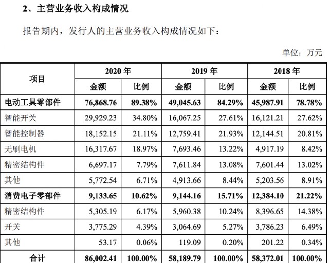 據招股書,華之傑定位於智能控制行業,是一家致力於為電動工具、消費電子等領域產品提供智能、安全、精密的關鍵功能零部件的供應商。