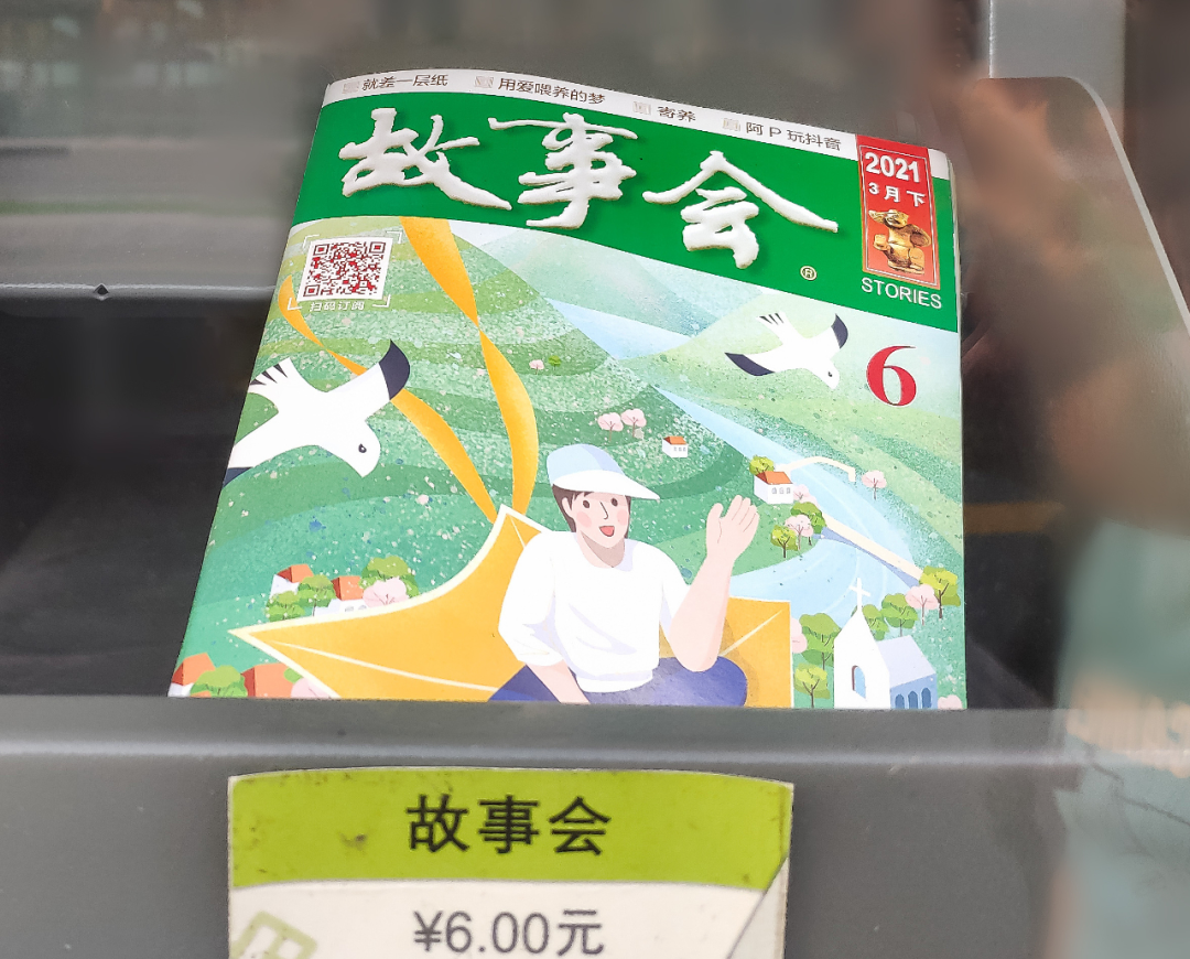 同一天下午,在北京市某熱門商業區附近,四家報刊亭分別坐落在四個路口。來此商業區逛街的年輕人很多,但燃次元發現,來來往往的人羣裏,卻很少有人會光顧報刊亭。在“蹲守”的一個小時內,其中一家報刊亭,只有一位過路的年輕人翻閲了《故事會》,但並沒有買。在朋友的嘲笑和拉扯下,他買了一瓶純淨水,然後離開了。