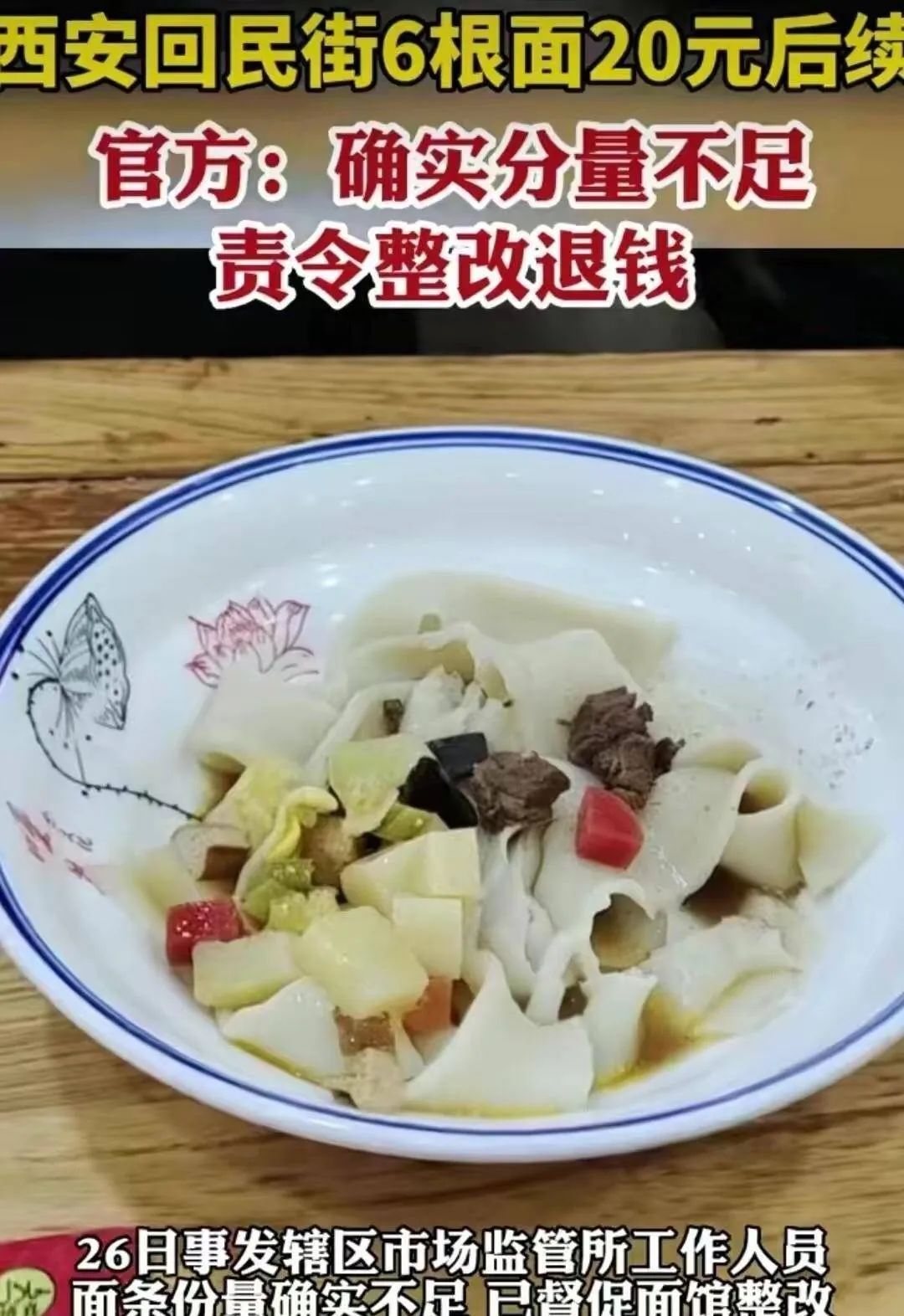 近日,有遊客吐槽了西安回民街某面館,一個像臉盆一樣大的碗,碗底只有6根面,大約就2元錢成本,卻賣20元!