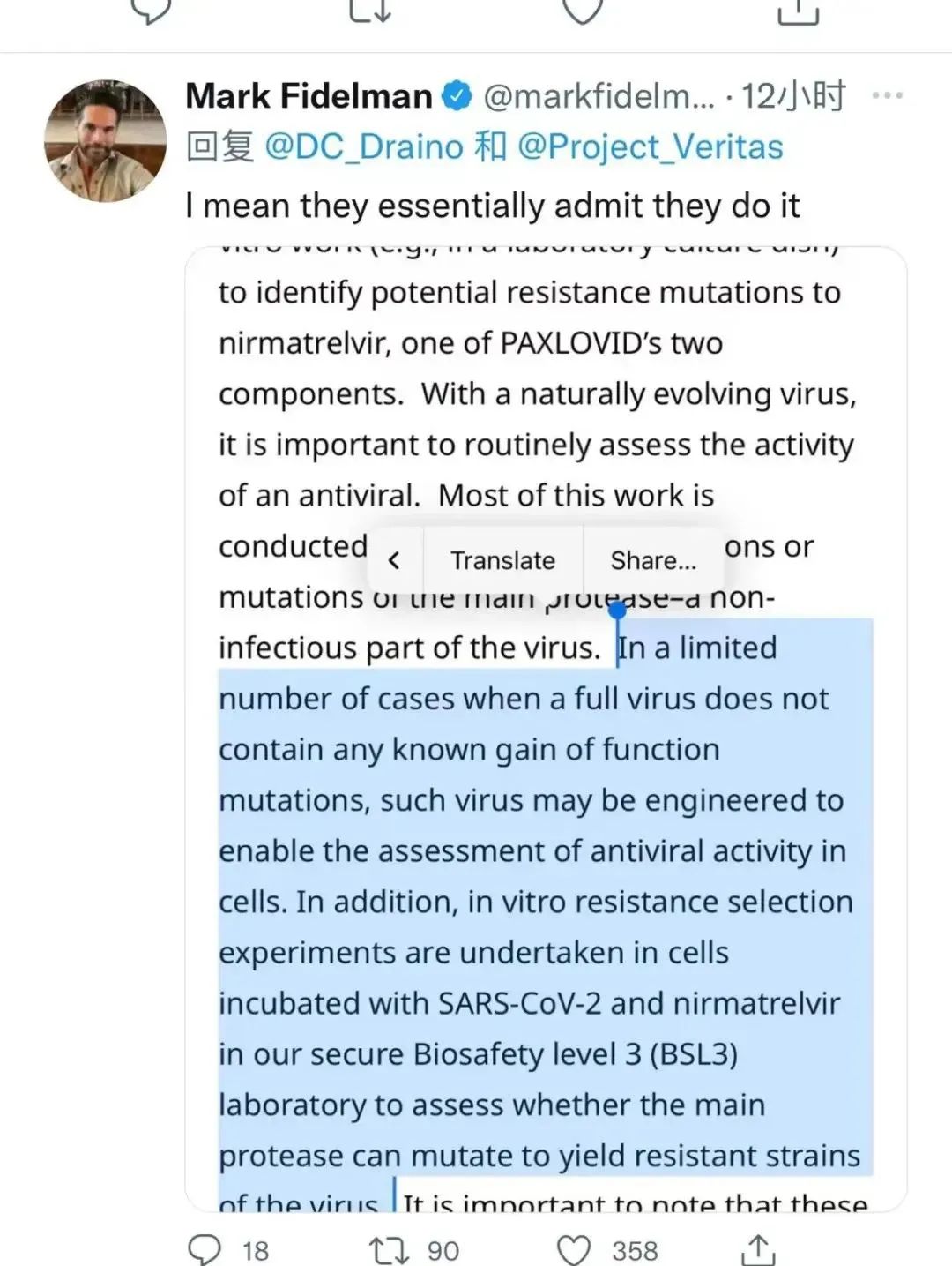 輝瑞表示,他們只是在實驗室製造變異株,為了研究藥物而已。他們需要確定病毒對新冠藥物Paxlovid的潛在耐藥突變,這符合美國監管機構的要求。