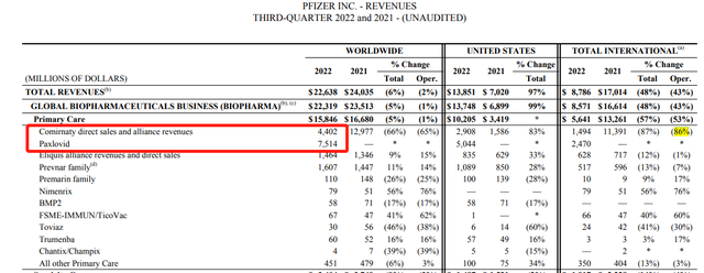 具體來看,2022年前三季度,輝瑞靠新冠疫苗整體收入264.77億美元,同比上漲9%,新冠口服藥收入171.99億美元。