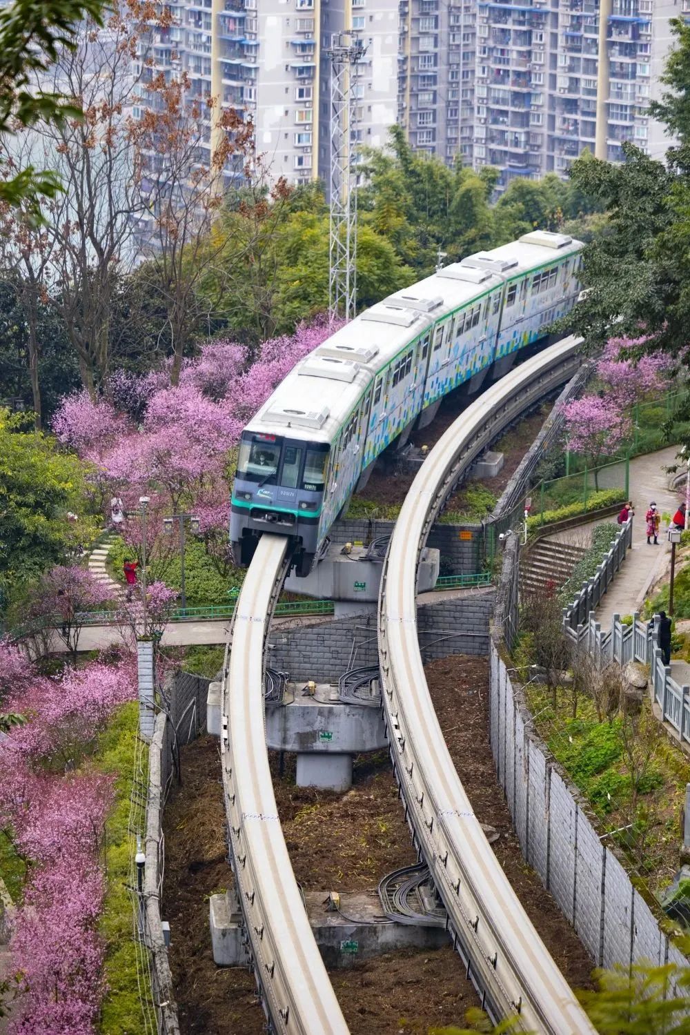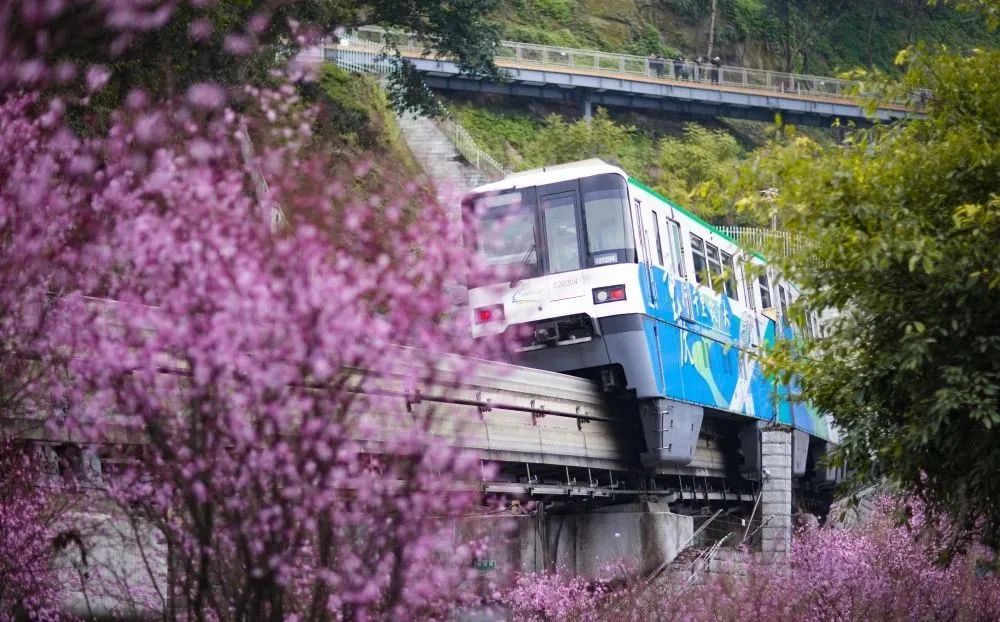 需要提醒的是,佛圖關公園的停車位比較緊張,而且停車場位於公園的南門,距離打卡點比較遠,步行大約需要二十分鐘左右,建議市民朋友乘坐“開往春天的列車”本車——單軌2號線,在佛圖關站B出口出站,然後從公園北門進入。