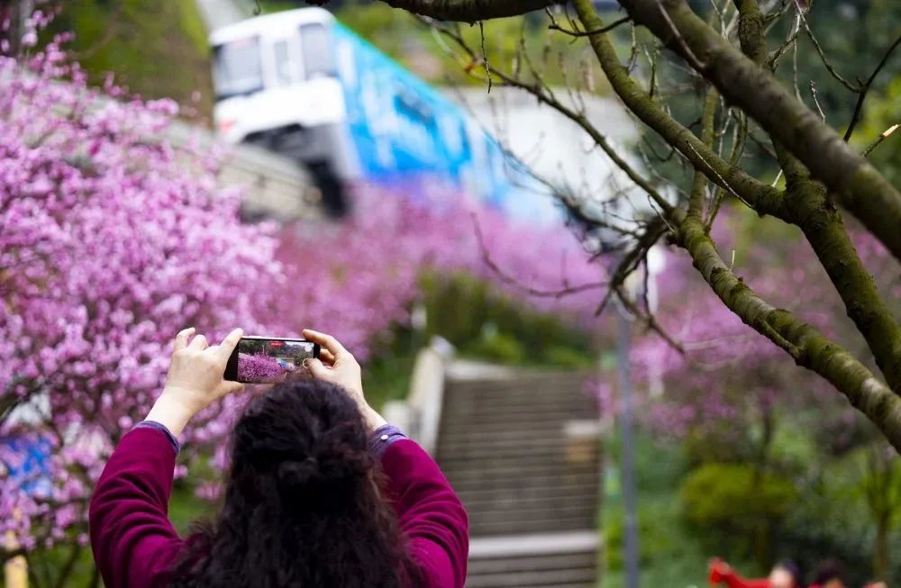 據佛圖關公園工作人員介紹,在自然生長的狀態下,美人梅的花期在2月中旬到3月中下旬,能夠持續一個月左右。由於近日氣温回升,2月下旬將進入盛花期,想看列車花海穿行的市民可擇時而來。