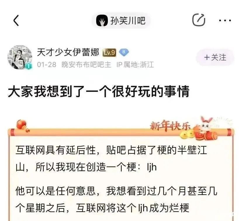 但對於一些比春晚現場觀眾還要無聊的吧友而言,這一天,只因 ljh 的存在,變得有那麼一絲不平凡。