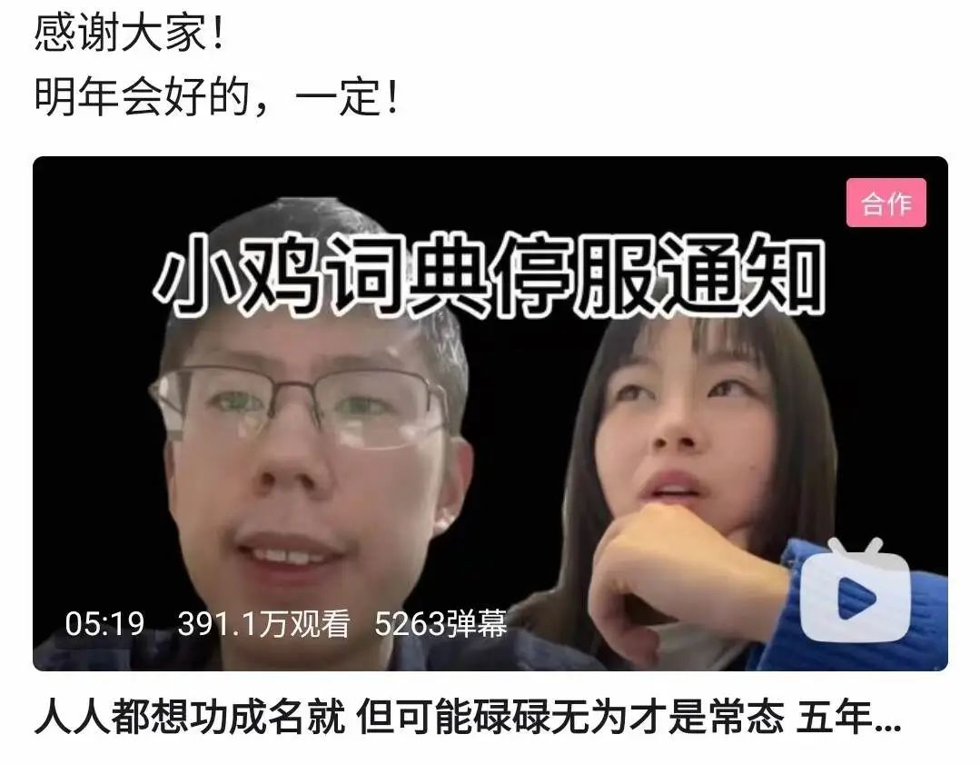 也許很多人都還沒聽説過小雞詞典的名字,畢竟作為一個日活幾十萬的玩梗百科全書App,用户流量自然難敵大廠App,但該公司的下架視頻卻引發了網友極大的關注。