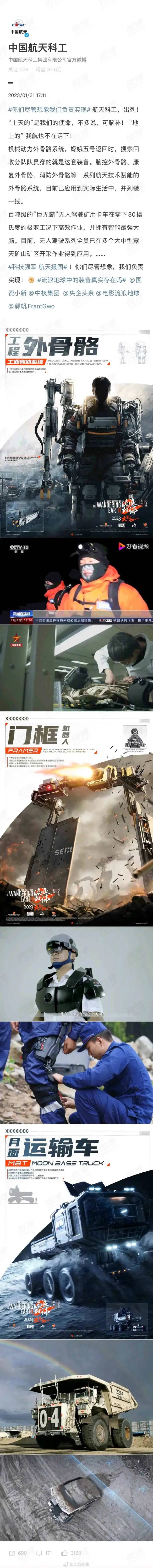 換個角度想一想,徐工集團提供、定製了一批裝備,贊助了一部必將載入史冊的中國科幻電影,這是對徐工集團、中國製造的最好宣傳啊,30多億票房的廣告啊……徐工贏麻了。