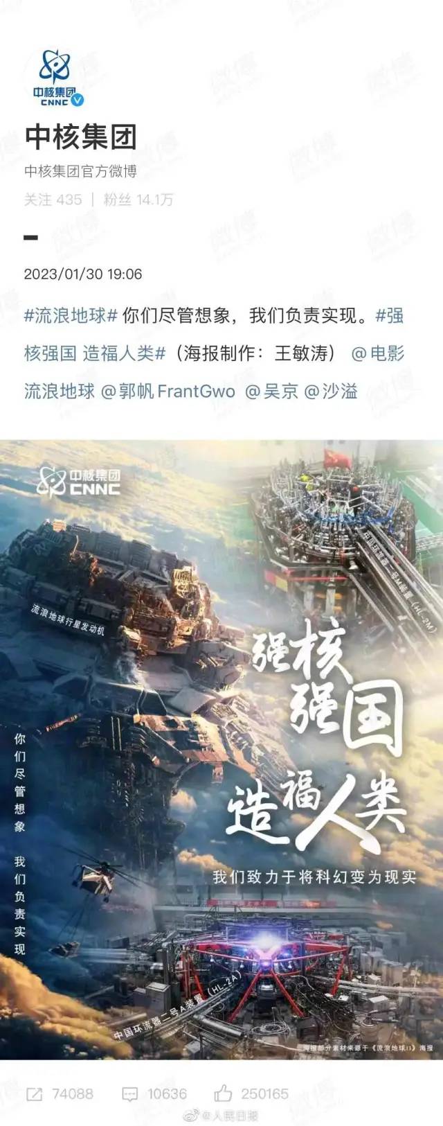 更何況,《流浪地球2》中體現出來的集體主義、責任擔當、人即文明等價值觀,與我國頂級國企的價值觀是共通的,搞工業,搞科技,就是為了服務國家和人民,就是為了人類命運共同體。