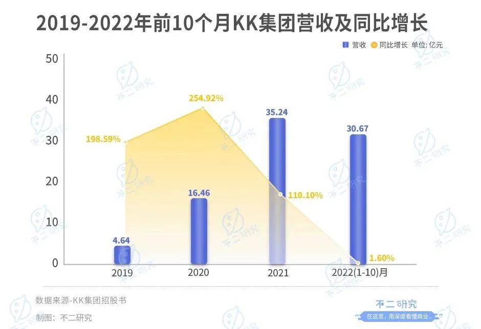 「不二研究」據其新版招股書發現:去年1-10月,KK集團營收30.67億元,同比增長1.60%;同期,其經調整後的淨虧損為-2.54億元,虧損同比擴大172.33%。