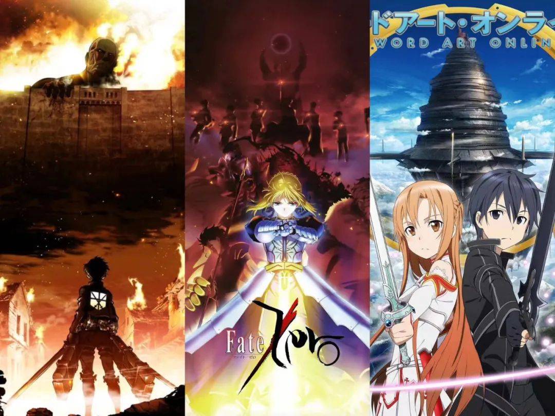 之所以海外市場收入佔比會在2015年左右大幅提升,與流媒體的蓬勃發展不無關係。過去日本動畫輸出的主要方式是電視頻道,互聯網的普及為其提供了新的渠道,藉此日本電視動畫能夠實現海外流媒體平台與日本電視台同步播出,觸達更多人羣。比如故事情節精彩、敍事風格細膩,擁有大量高質量打鬥場面的《進擊的巨人》就十分符合歐美觀眾的口味,而由國內視頻平台引入的《刀劍神域》《Fate/Zero》等作也火得一塌糊塗,成為了眾多動漫愛好者的“入坑作”。