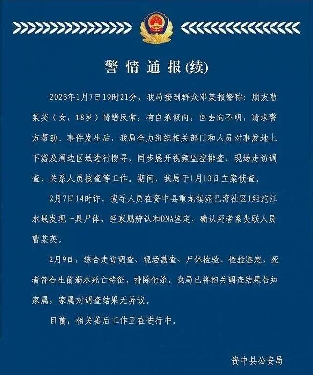 5、四川18歲女生失聯1個月後遺體被發現 警方排除他殺