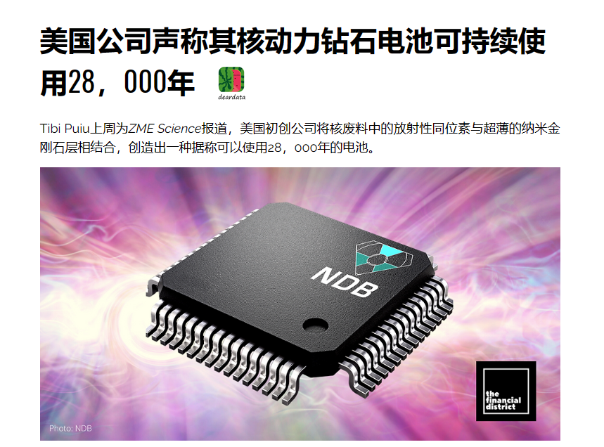 有家美國創業正在進行核電池相關的驗證測試,預計將在2023年推出一款商用納米金剛石電池產品。這項可能改變遊戲規則的技術來自總部位於舊金山的初創公司Nano Diamond Battery(NDB)。