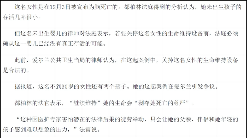 專家B:腦死亡懷孕女子生命維持設備可關停,否則就是在剝奪她死亡的尊嚴。