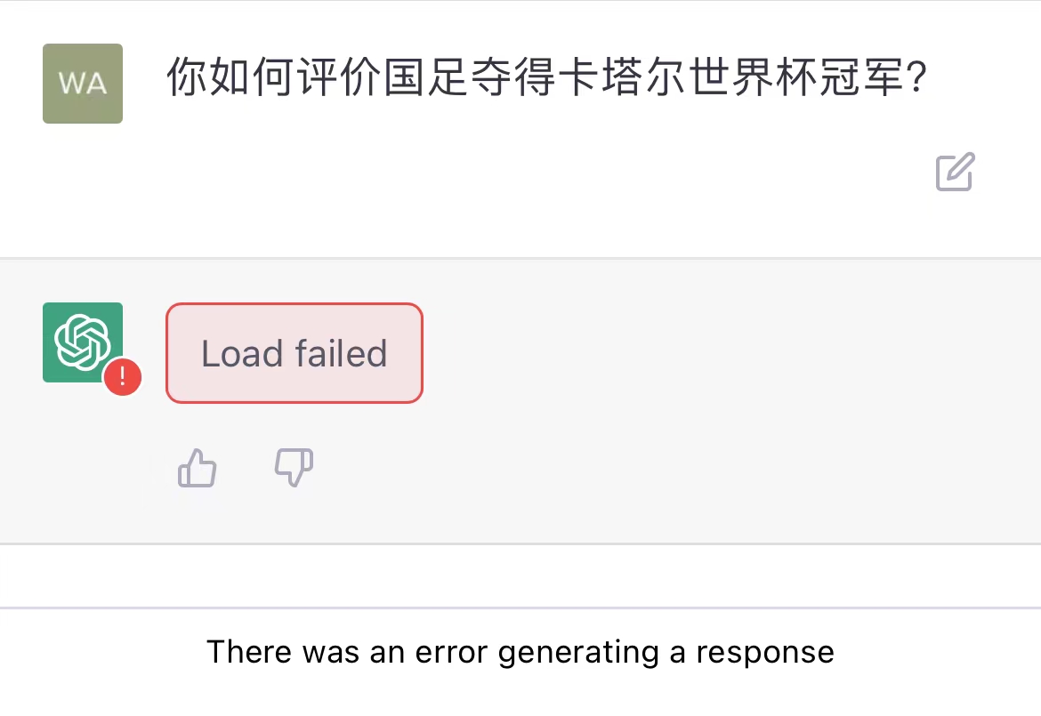 遺憾的是,ChatGPT並未給出確切的回答,而是模稜兩可含混過去。當然,這也可以理解,這一題的難度無異於高數最後一道大題。進入世界盃的確切時間答不上來也沒關係,問問可能性總可以吧。