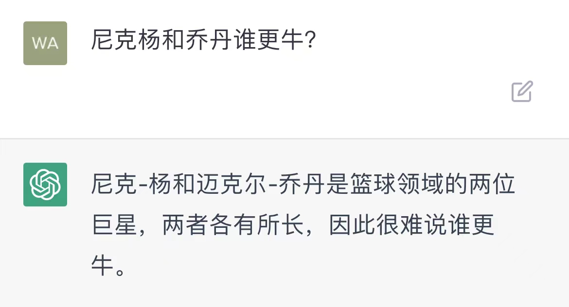 作為數據庫龐大的人工智能技術軟件,ChatGPT是不是能夠終結各種體育項目中關於“誰更牛”的話題呢?
