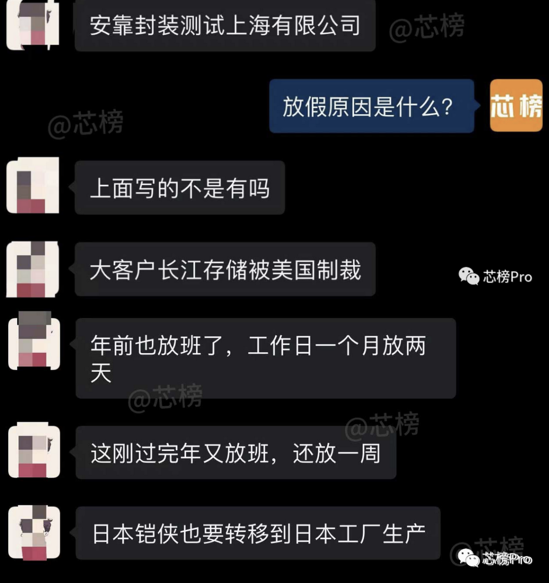 據員工爆料,安靠上海大客户日本鎧俠也要轉移到日本工廠生產,另越南安靠工廠已經建好,員工對於未來工作表示擔憂。訂單減少疊加安靠越南工廠建成,安靠恐有裁員、撤出等風險。截止目前,官方暫未對以上傳言進行回應。