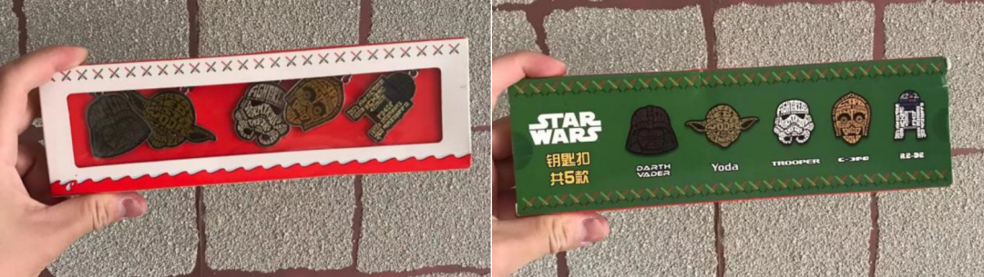 比如《星球大戰》推出的一款鑰匙扣,就不僅是簡單的描線加填色,而是用不同的文字符號填充在了人物形象的輪廓中,通過精心的再設計讓產品擁有IP精神內核的差異化,從而獲得用户對其溢價的認可。