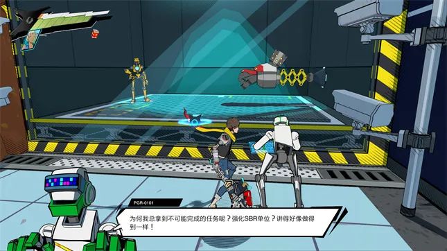 但這並不意味着在《Hi-Fi RUSH》裏節奏不重要,它只不過是把節奏的重要性延後罷了。最初卡點成功的獎勵只不過是傷害數值的提升以及獲得更高的評分,隨着遊戲進程的發展,逐步解封的遊戲機制使得玩家開始重視遊戲節奏。連擊的最後一招需要卡節奏,想要連續閃避需要卡節奏,格擋敵人的問題同樣需要卡節奏。但是玩家在陸續經歷的關卡中已經慢慢習慣瞭如何尋找節奏,這經過精心設計的學習曲線能夠讓玩家在遊玩過程中更容易抓到遊戲的爽點。