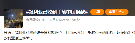 敍利亞駐華大使館表示,截至2月8日,已經收到了數千筆來自中國的愛心捐款,感謝大家的愛心和幫助。