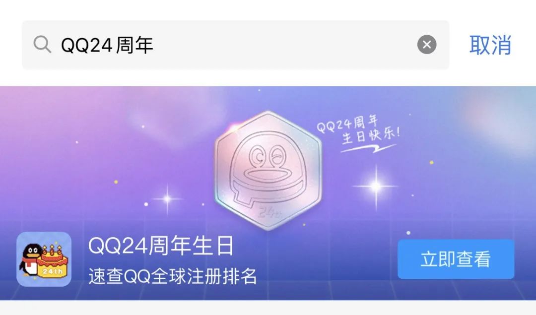 打開手機QQ,點擊最上面的“QQ24週年生日快樂”橫幅即可。如果沒有看到橫幅,可以在搜索框中,輸入“QQ24週年”,點擊確認後便有了。