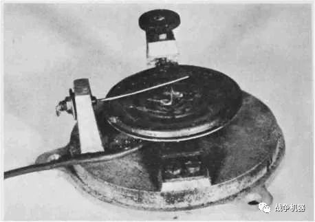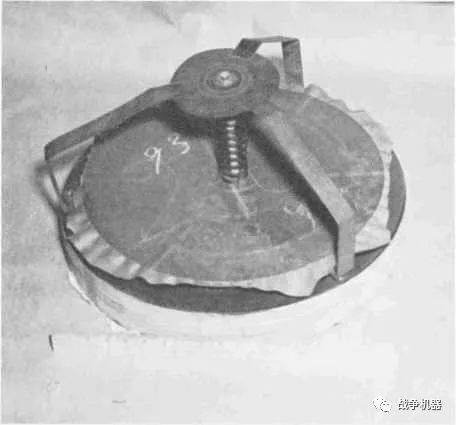 就在這個輪子的上方並與之平行的是一個直徑較小的鋁環,裏面有用於放置引信的另一端的孔,以及同樣數量的彈簧張力開關。